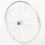 Forhjul bygget op med et Shimano Nexus rullebremse nav , Zac 2000 Mat sølv fælg og rustfri eger. Et stærkt hjul med kvalitets komponenter.