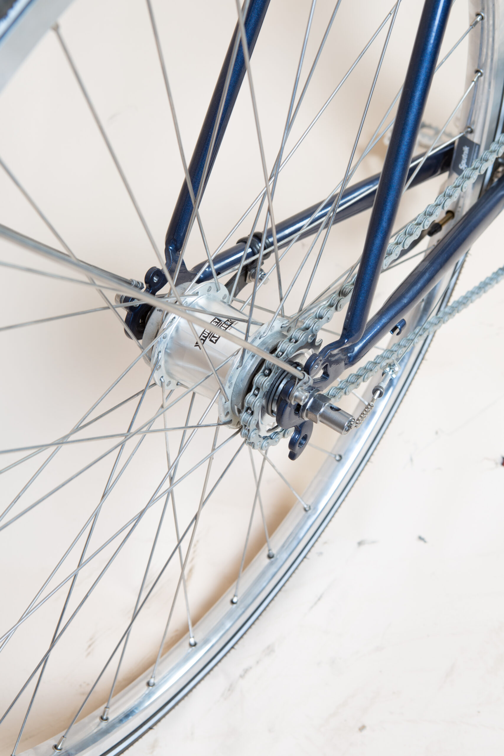 Letvægts muffet cr-mo stål ramme (cyklen som den står der vejer ca 12 kg). Bygget op med Sturmey archer 3g nav med fodbremse. Håndbremse og bremse klo fra Dia Compe.
