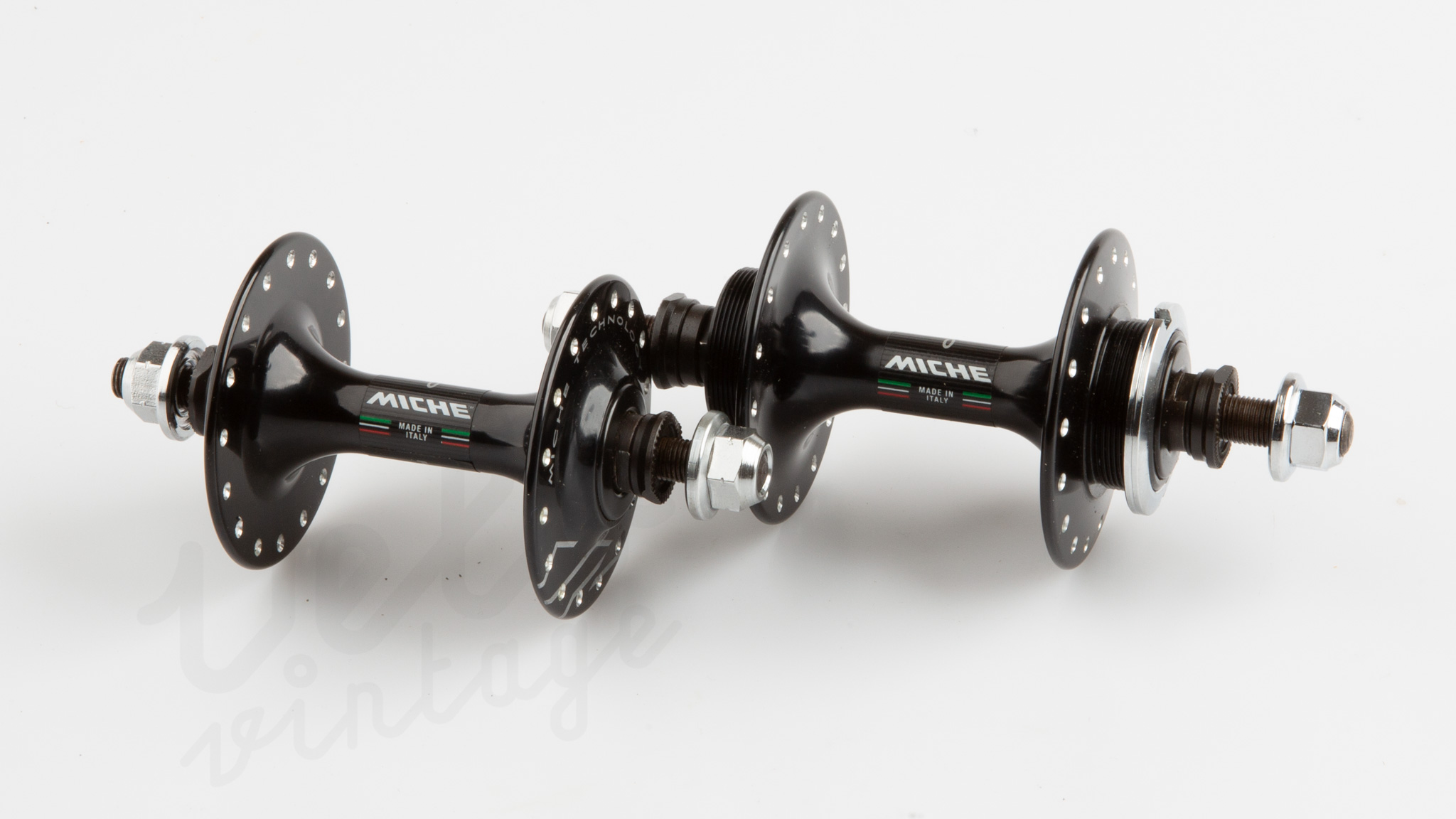 MICHE Primato Pista hub set fix/free | 32 hole | black | solid axle, high flange, incl. Locknut and Lockring