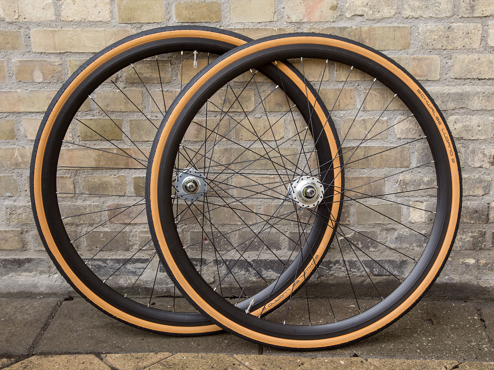 Der er monteret 25 mm brede Schwalbe gumwall dæk med naturgummifarvede sider og Schwalbe slanger.