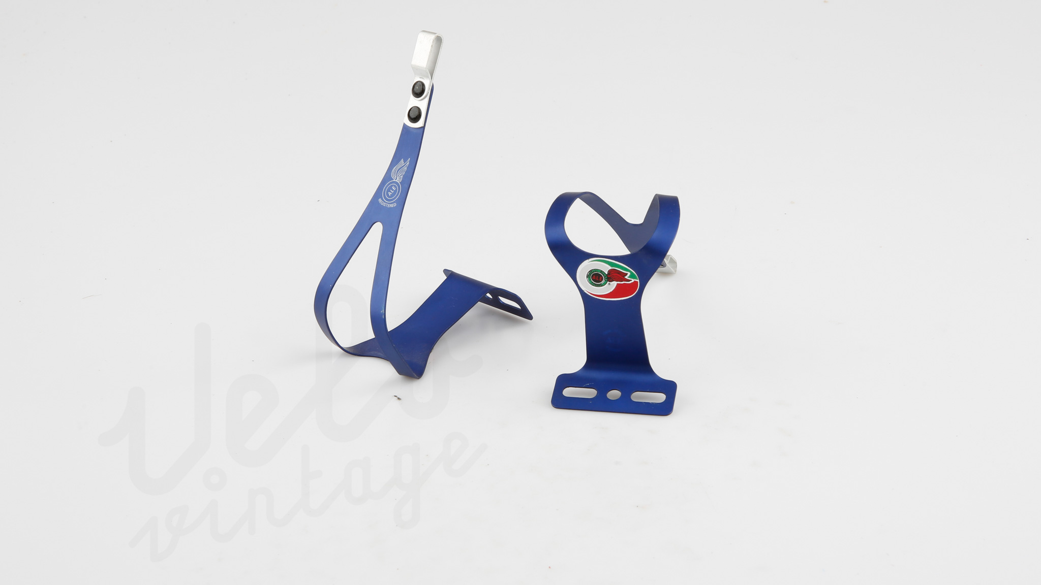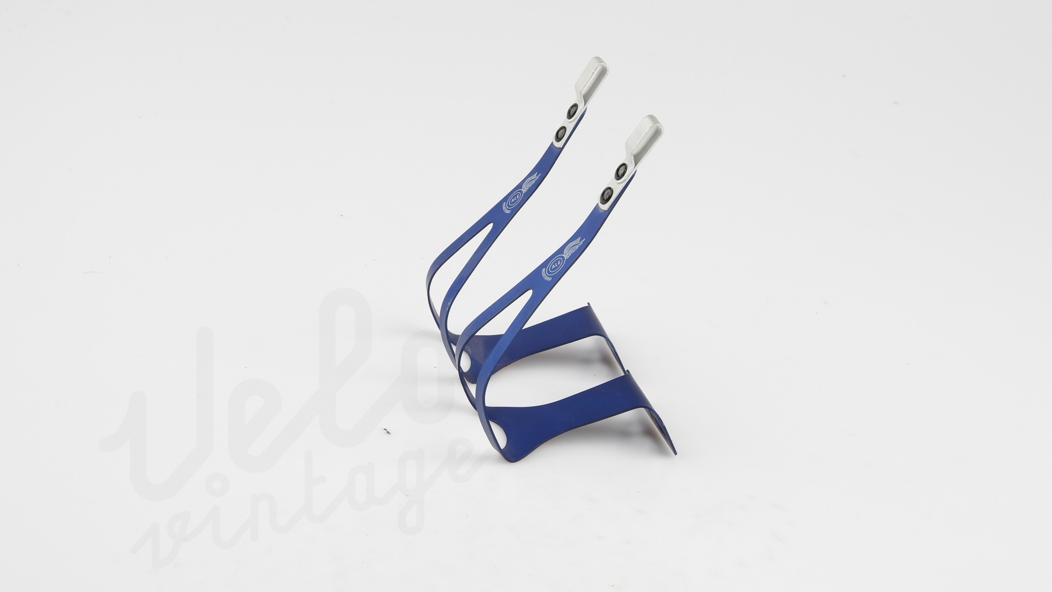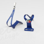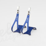 Vintage ubrugte tåclips fra ALE. Super lækre og lette aluminiums tåclips i fed anodiseret blå farve.
