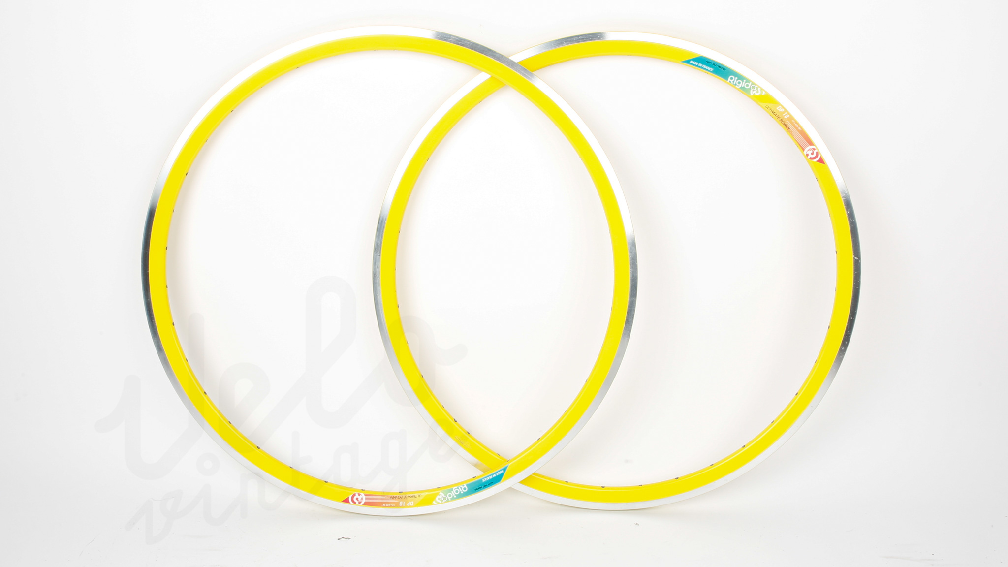 The vintage Rigida DP 18 is a classic double-wall 700c rim, produced in the 1980s–1990s and renowned for its strength, stiffness, and reliability. This yellow version is ideal for retro bikes, collector projects, or custom builds, combining functional performance with a striking vintage aesthetic. Designed for rim brakes, it accommodates most 700c wire-bead tires.