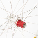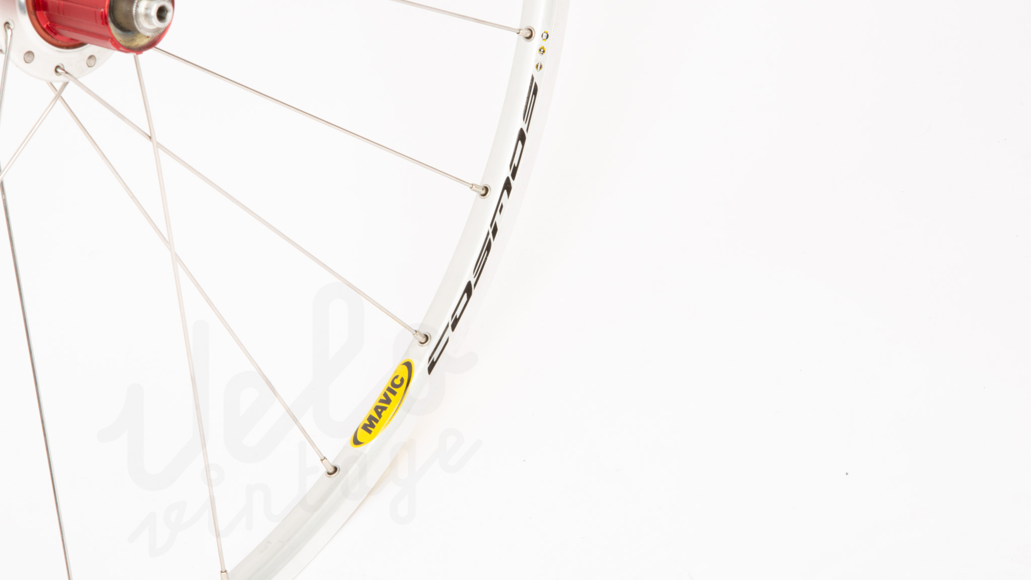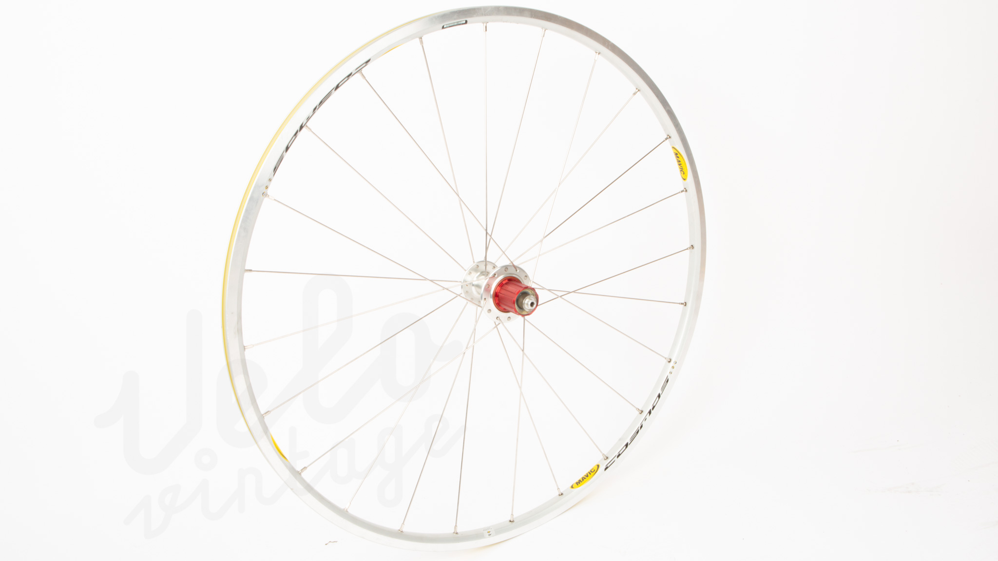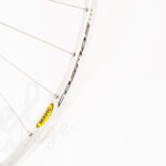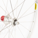 Topklasse baghjul perfekt til en high end youngtimer vintage racer. Nyt håndbygget på vores værksted med NOS Mavic Cosmos 24H Clincher fælg og et brugt Zipp 208 bagnav.
