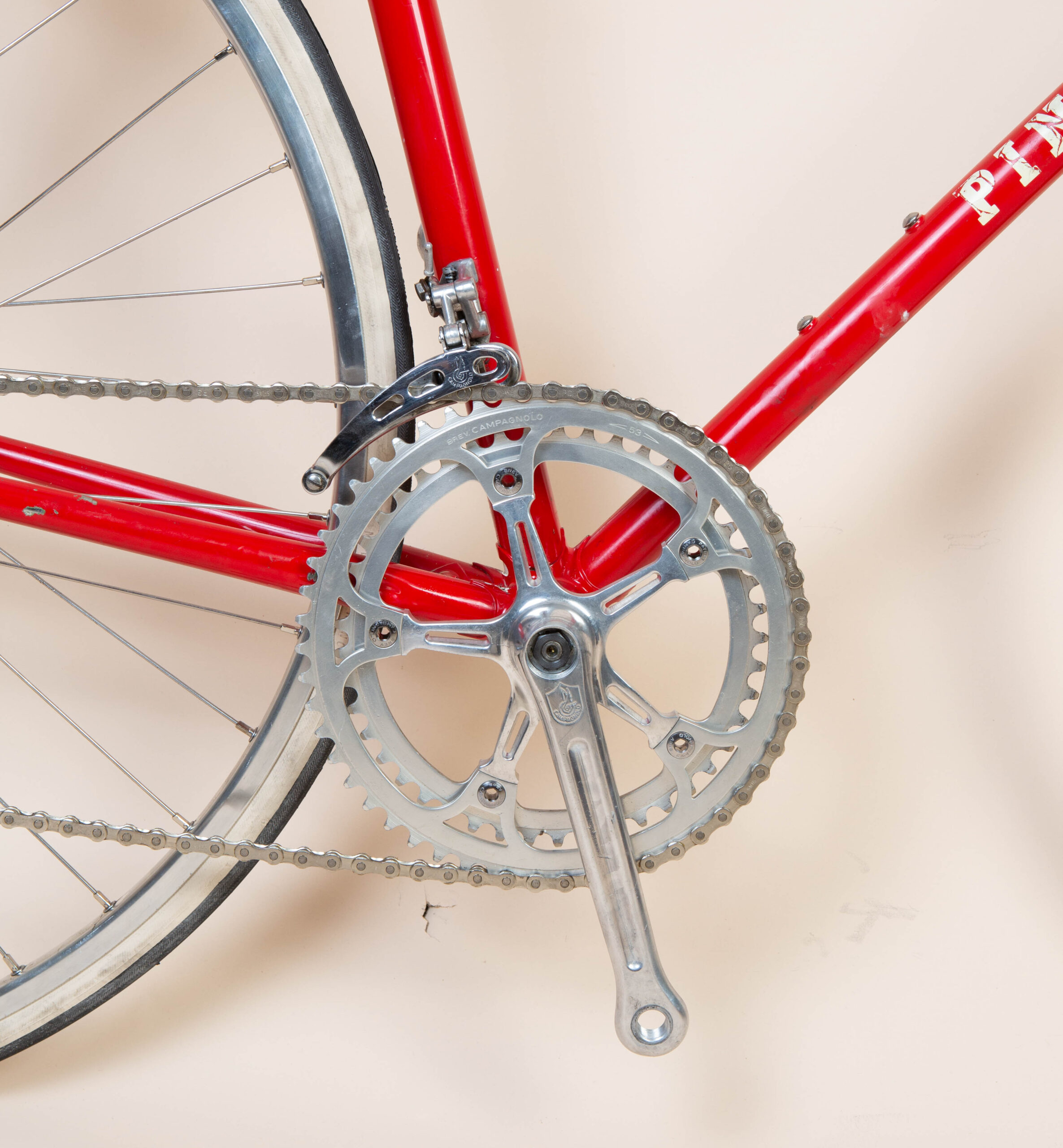 Pinarello top modellen fra 1982. Prestige S er en meget speciel ramme med skjulte kabel føringer over alt. Det var meget yderst usædvanling i 1982.