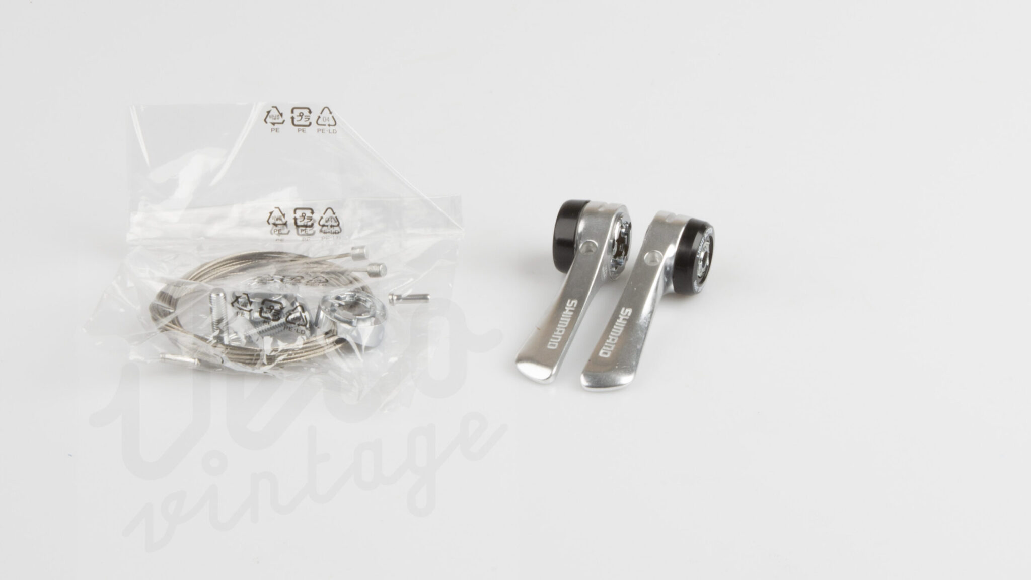 Gearvælgere fra Shimano til montering på stålramme skrårør, hvor der er påloddet studser til formålet.