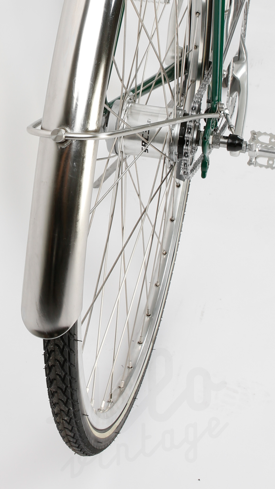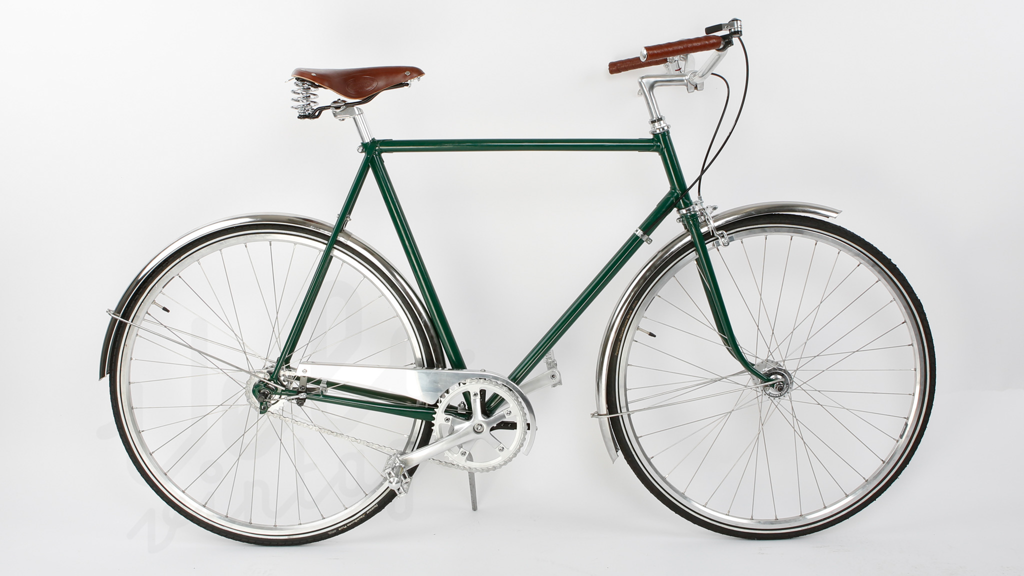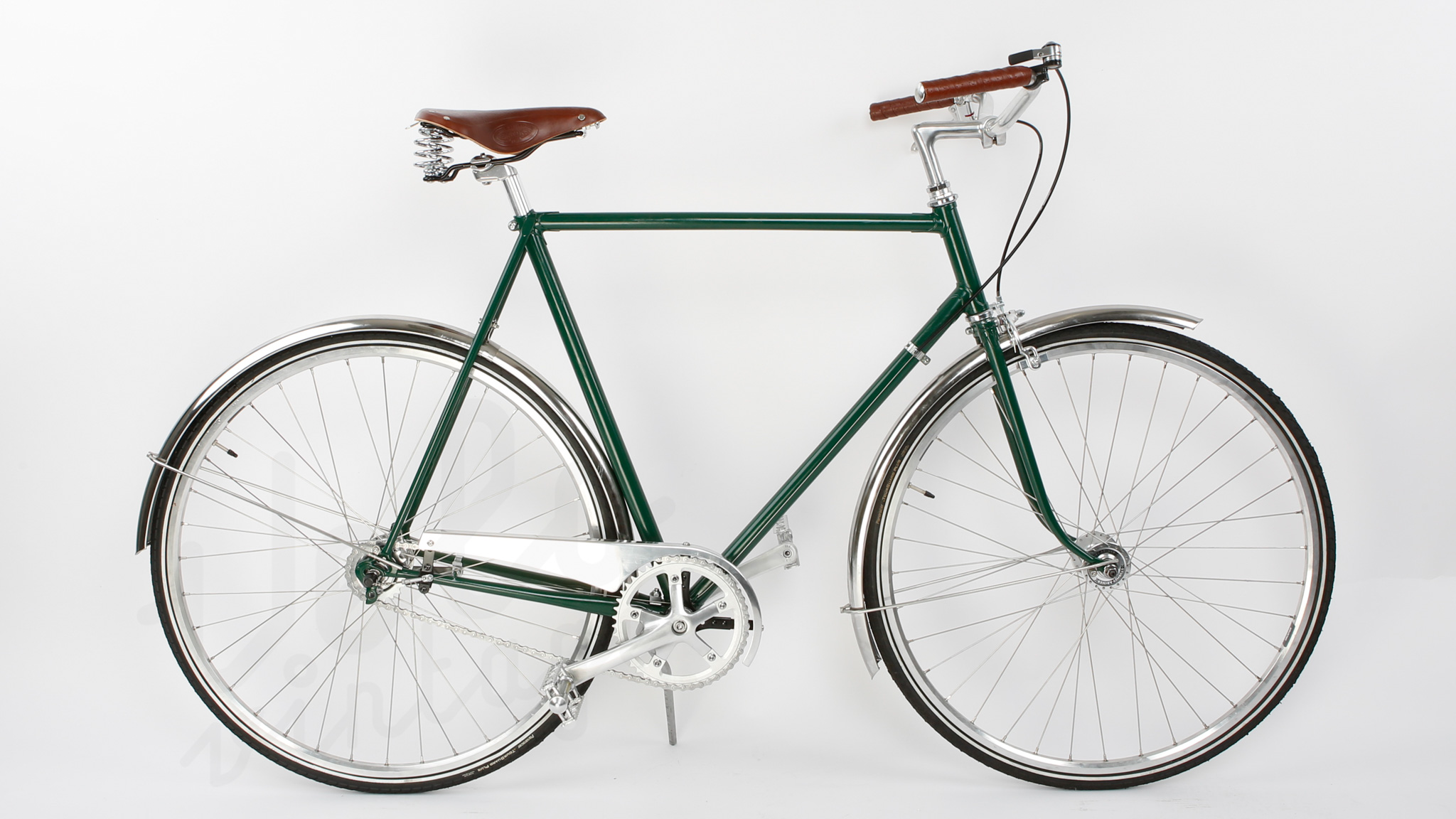 Smuk herrecykel bygget op på et Schrøder vintage stel fra 1970. Stellet er sandblæst og pulverlakeret i farvekode RAL 6009.