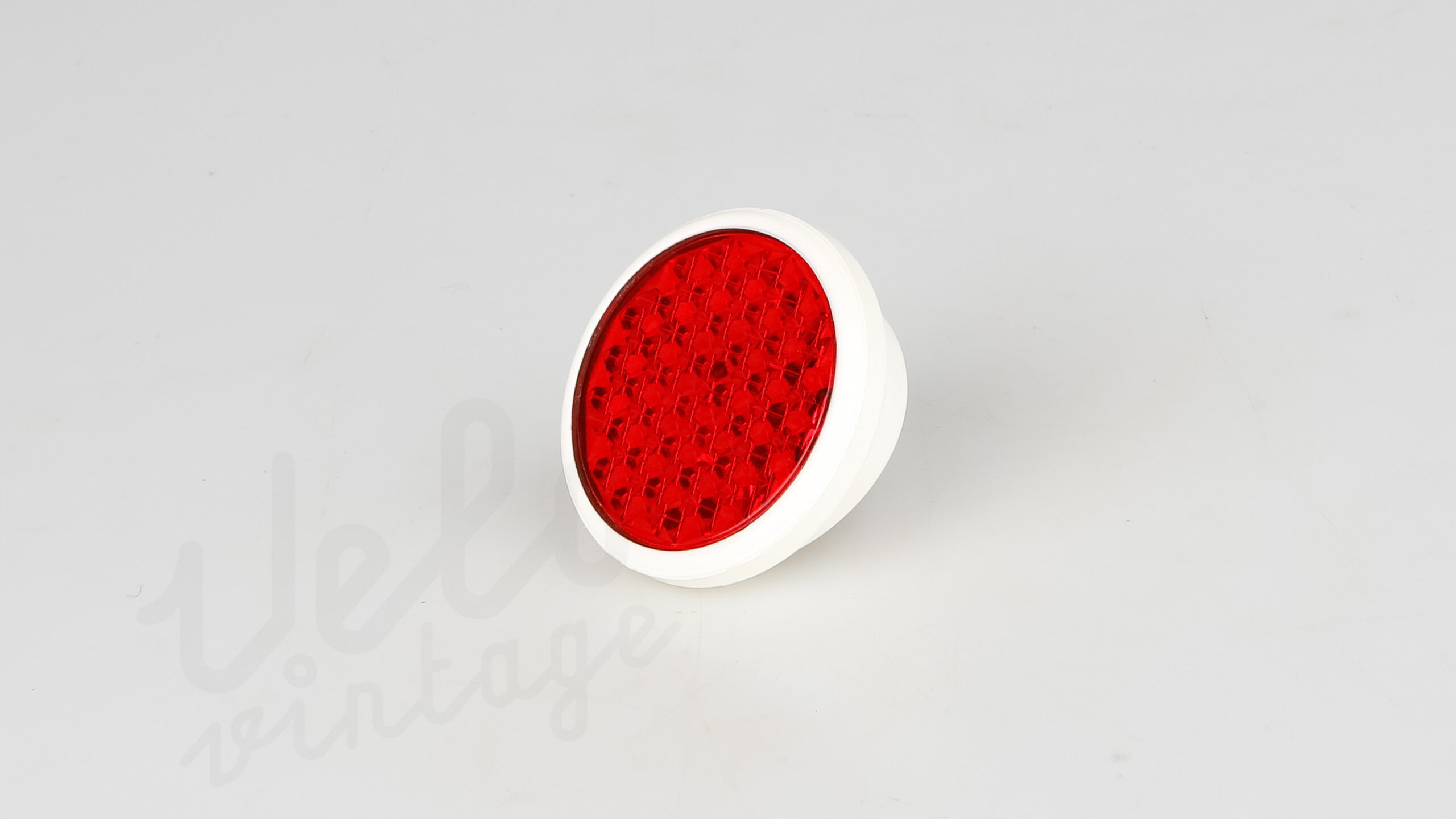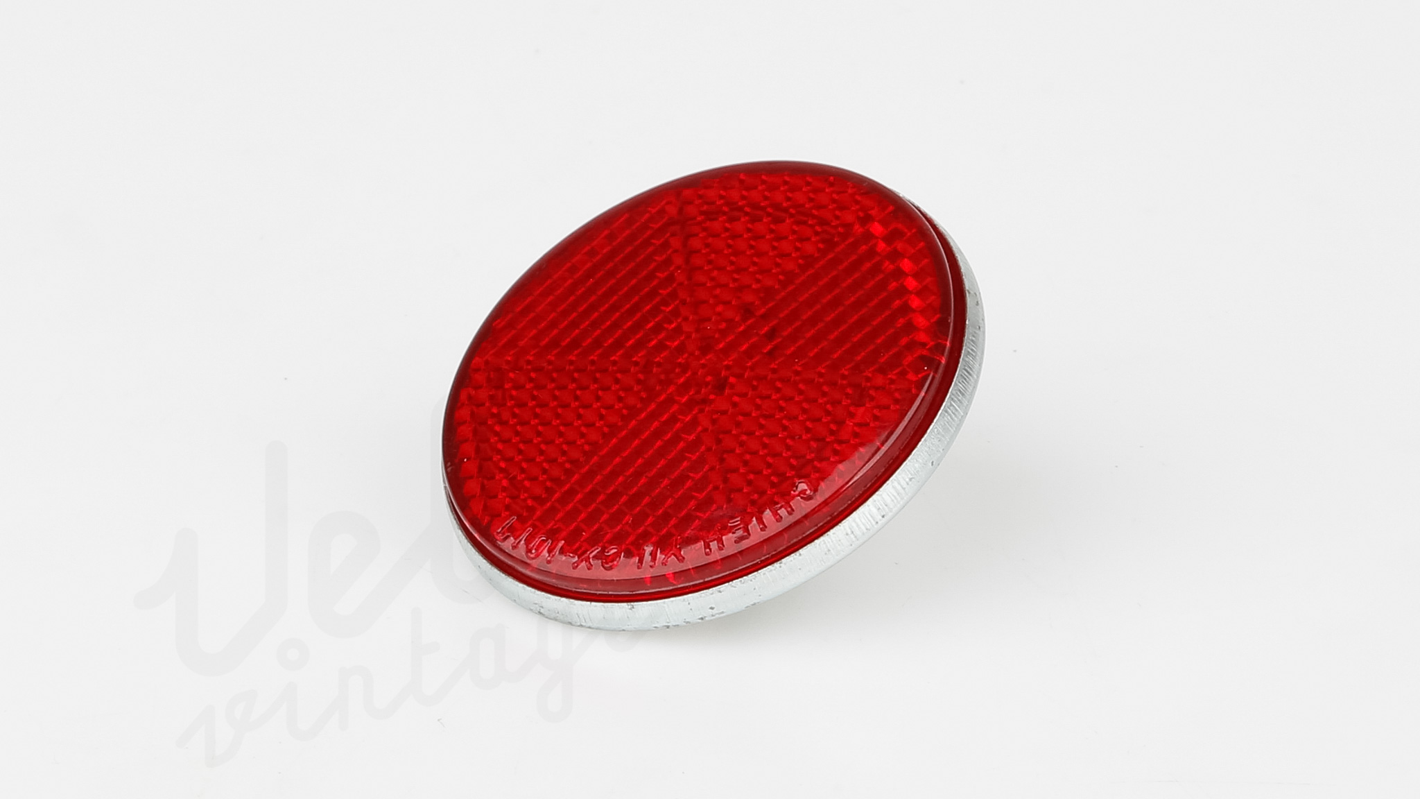 Vintage NOS (ubrugt vare stadig i plastik) . Katteøje med rød refleks ø50mm til montering i feks bagskærm