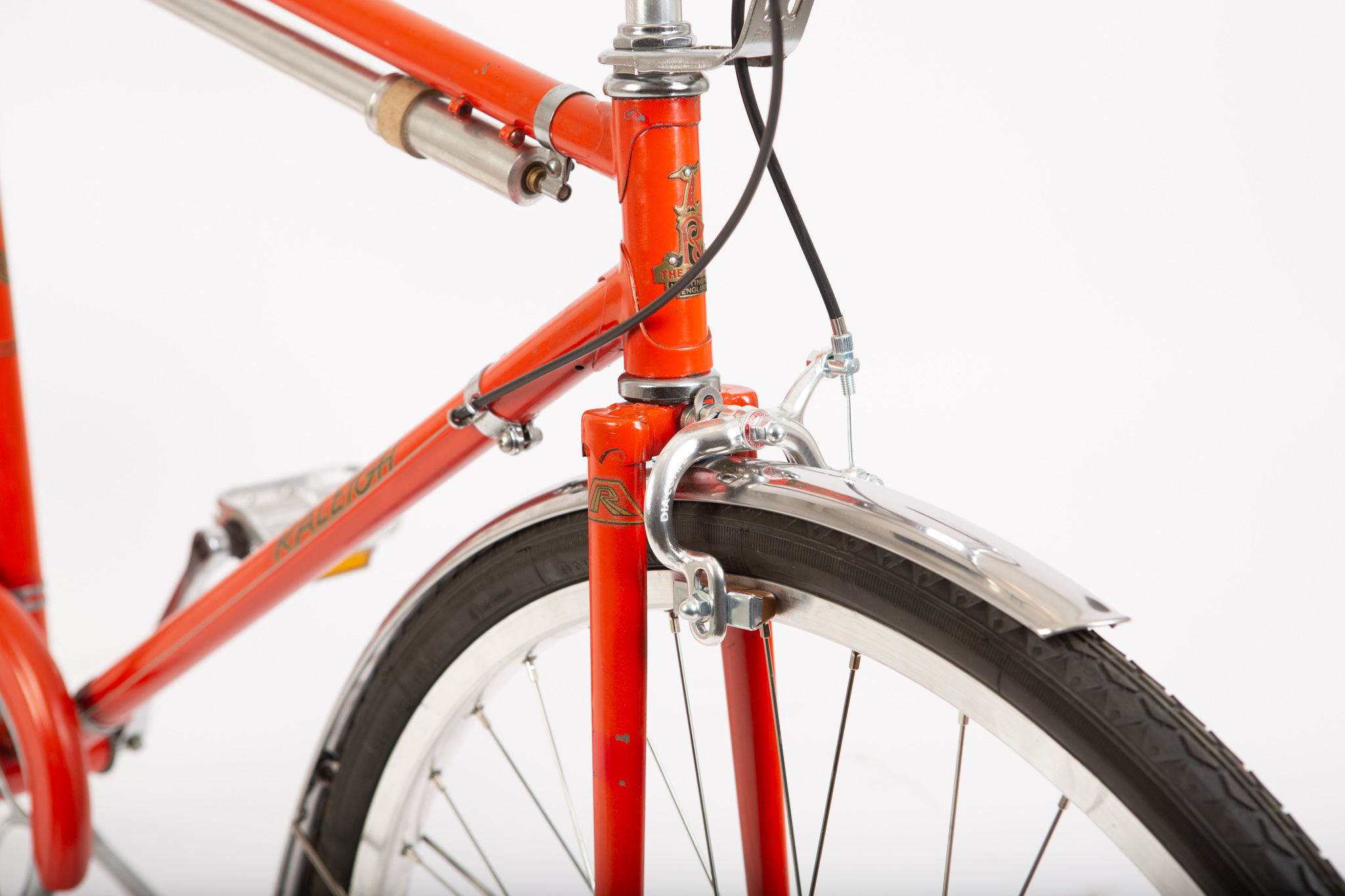 Vi har beholdt den smukke originale kædeskærm. Så har vi renoveret den originale kilebolts krank . da de 2 ting er en stor del af “personligheden” på den cykel. Resten er nyt udstyr som stadig passer fint for en cykel af den årgang.