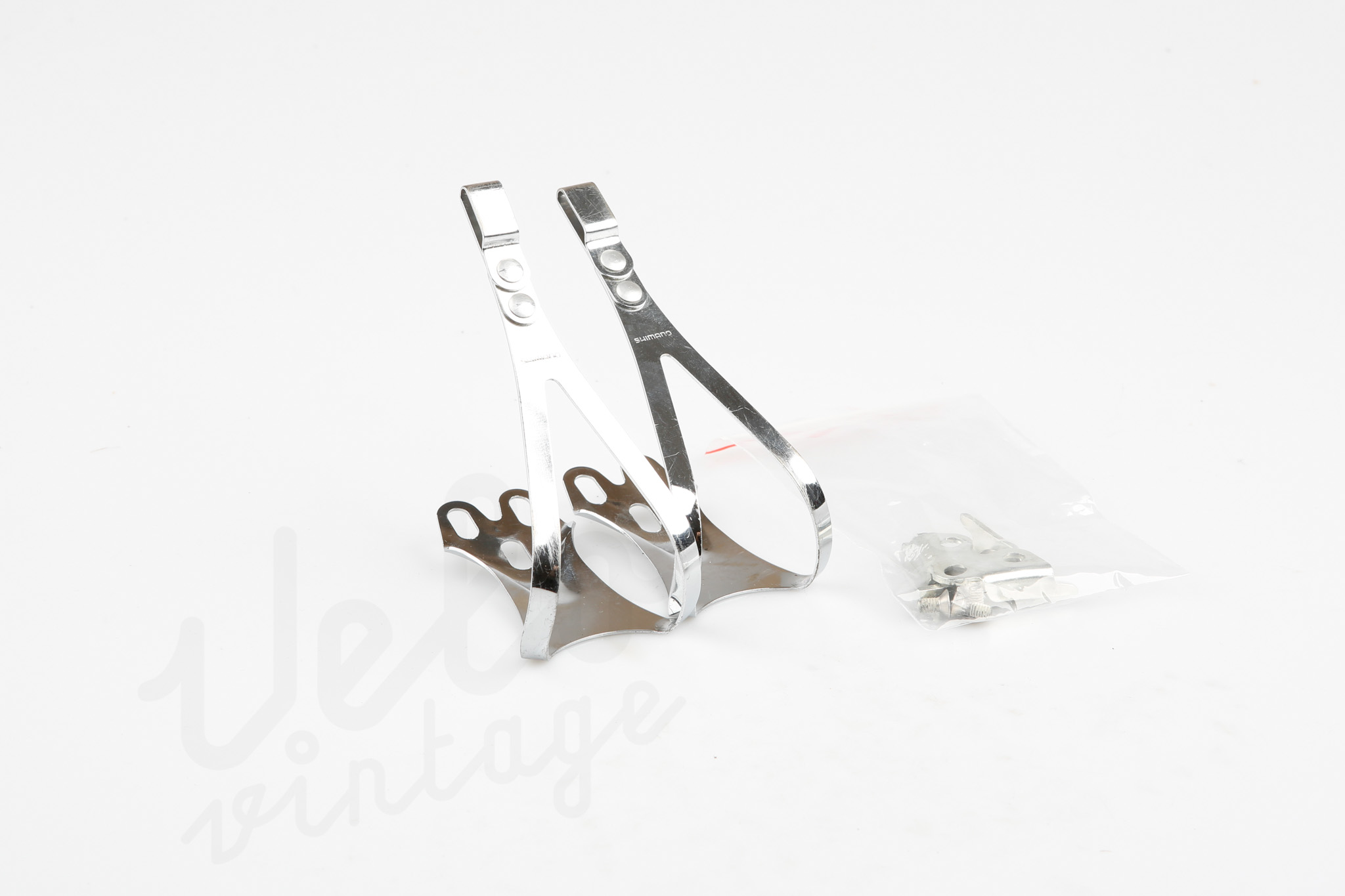 Set of Vintage Shimano PD-6400 toe clips . Steel chrome. Size Large.